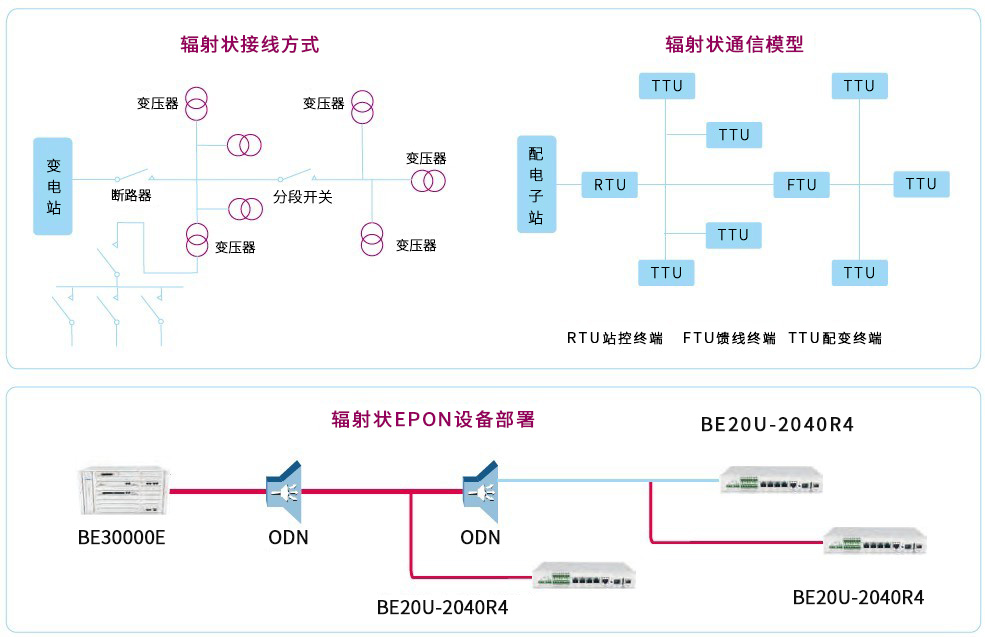 ◎ EPON電力配網(wǎng)解決方案之輻射狀接線: